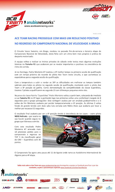 ACE TEAM RACING PROSSEGUE COM MAIS UM RESULTADO POSITIVO NO REGRESSO DO CAMPEONATO NACIONAL DE VELOCIDADE A BRAGA